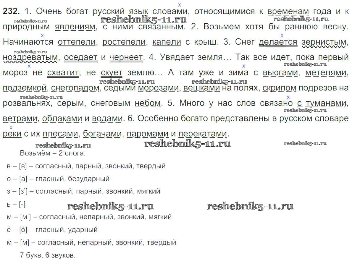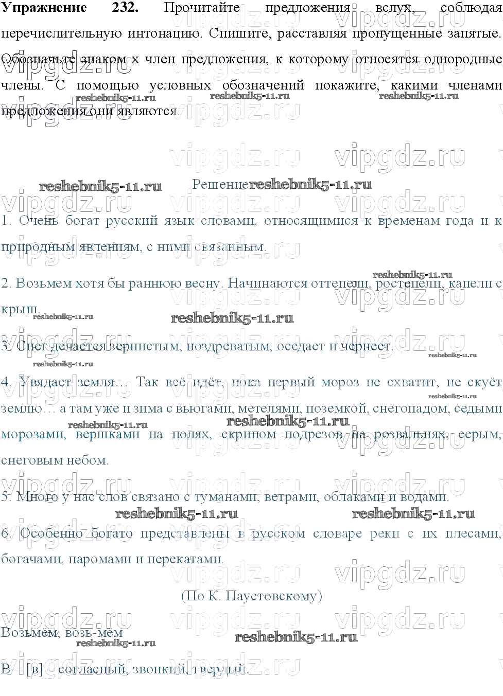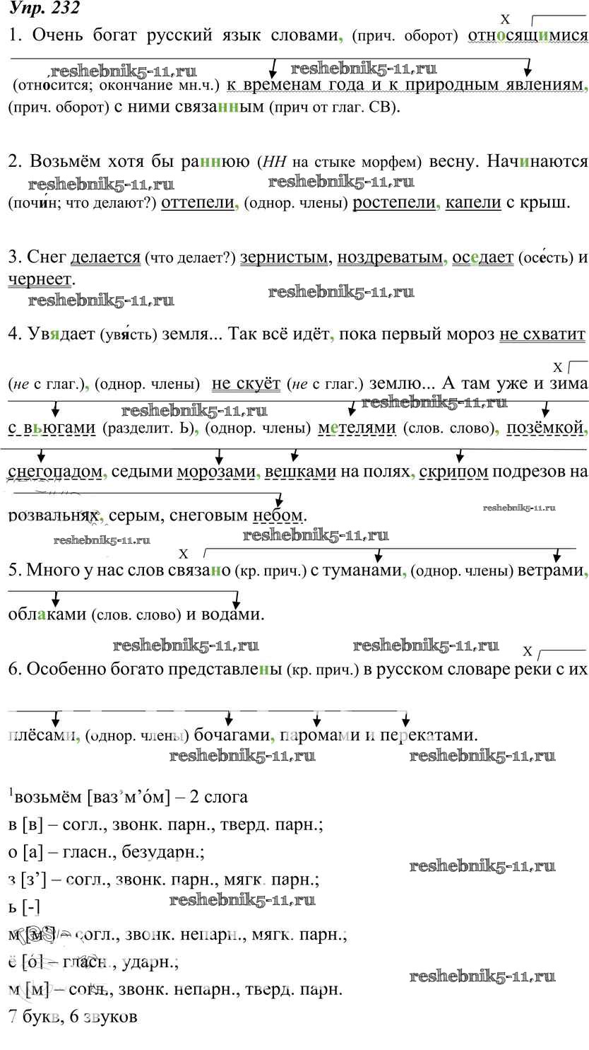 Готовая домашняя работа с ответами по Русскому языку за 8 класс Тростенцова, Ладыженская, Дейкина, Александрова Учебник Просвещение 2014 ФГОС - Упражнения 232