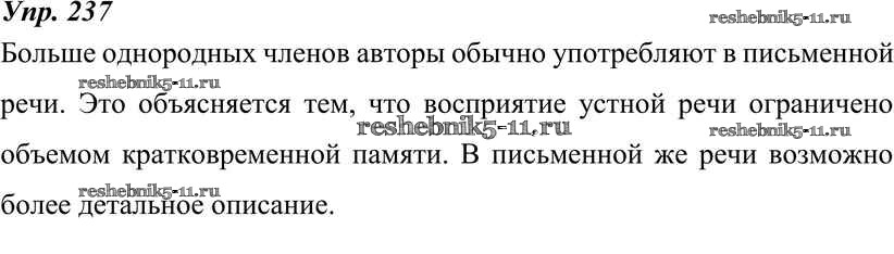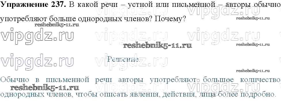 Готовая домашняя работа с ответами по Русскому языку за 8 класс Тростенцова, Ладыженская, Дейкина, Александрова Учебник Просвещение 2014 ФГОС - Упражнения 237