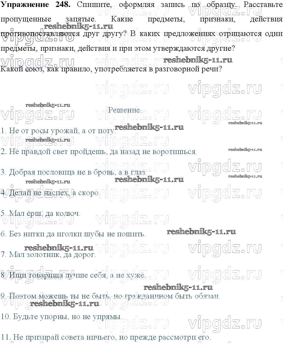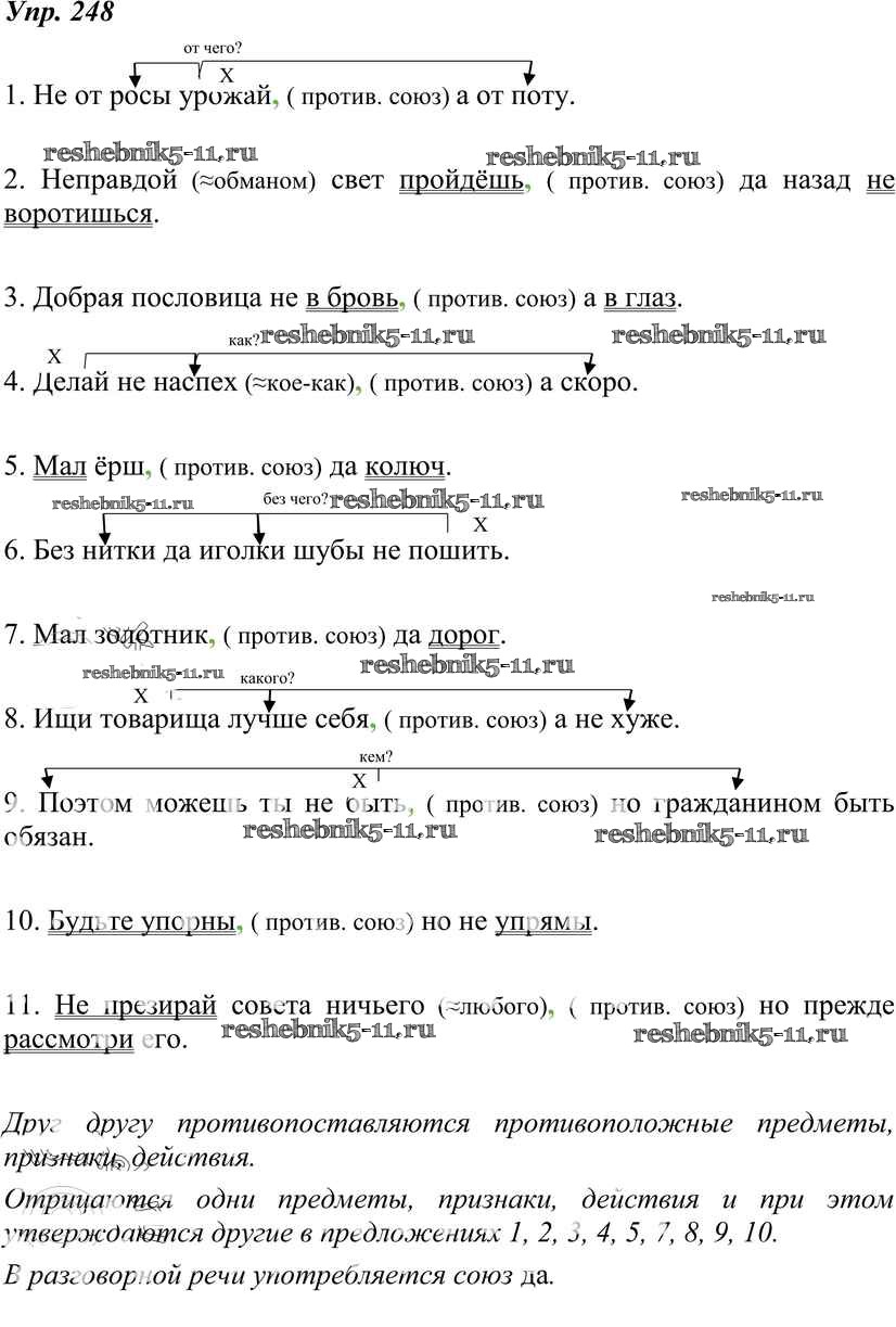 Готовая домашняя работа с ответами по Русскому языку за 8 класс Тростенцова, Ладыженская, Дейкина, Александрова Учебник Просвещение 2014 ФГОС - Упражнения 248