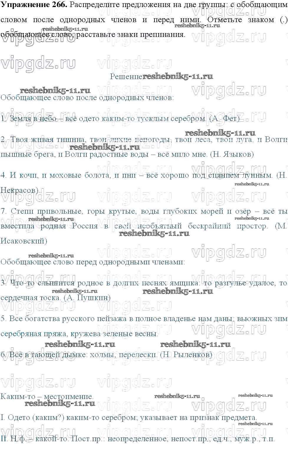 Готовая домашняя работа с ответами по Русскому языку за 8 класс Тростенцова, Ладыженская, Дейкина, Александрова Учебник Просвещение 2014 ФГОС - Упражнения 266