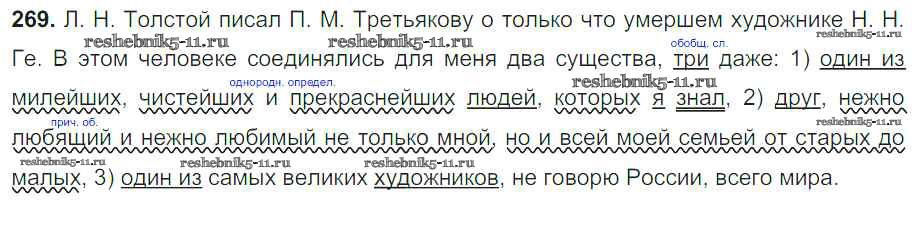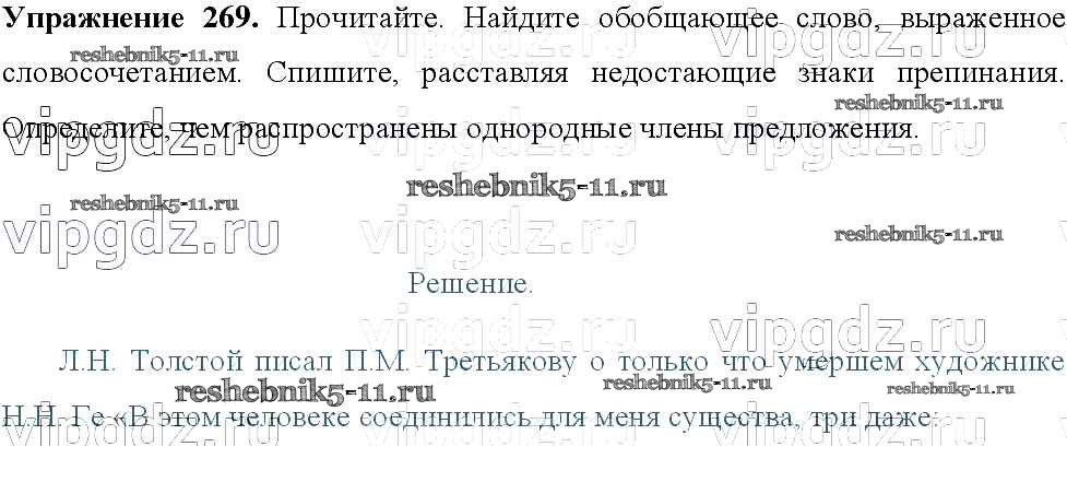Готовая домашняя работа с ответами по Русскому языку за 8 класс Тростенцова, Ладыженская, Дейкина, Александрова Учебник Просвещение 2014 ФГОС - Упражнения 269