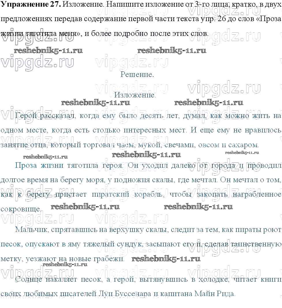 Готовая домашняя работа с ответами по Русскому языку за 8 класс Тростенцова, Ладыженская, Дейкина, Александрова Учебник Просвещение 2014 ФГОС - Упражнения 27