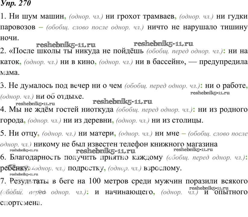 Готовая домашняя работа с ответами по Русскому языку за 8 класс Тростенцова, Ладыженская, Дейкина, Александрова Учебник Просвещение 2014 ФГОС - Упражнения 270