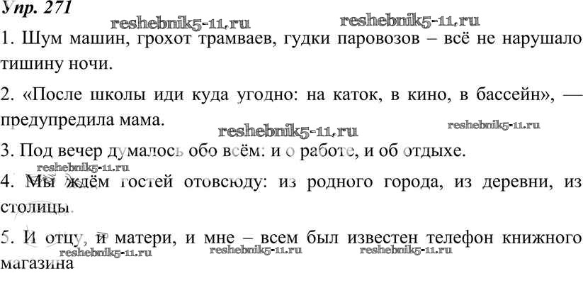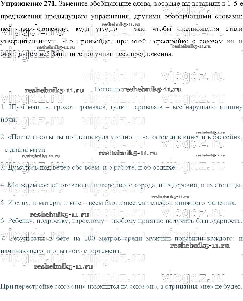 Готовая домашняя работа с ответами по Русскому языку за 8 класс Тростенцова, Ладыженская, Дейкина, Александрова Учебник Просвещение 2014 ФГОС - Упражнения 271