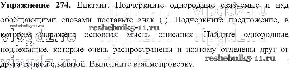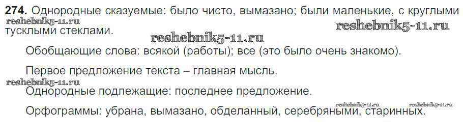 Готовая домашняя работа с ответами по Русскому языку за 8 класс Тростенцова, Ладыженская, Дейкина, Александрова Учебник Просвещение 2014 ФГОС - Упражнения 274