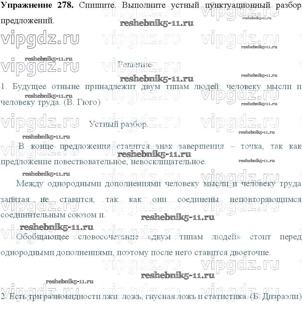 Готовая домашняя работа с ответами по Русскому языку за 8 класс Тростенцова, Ладыженская, Дейкина, Александрова Учебник Просвещение 2014 ФГОС - Упражнения 278