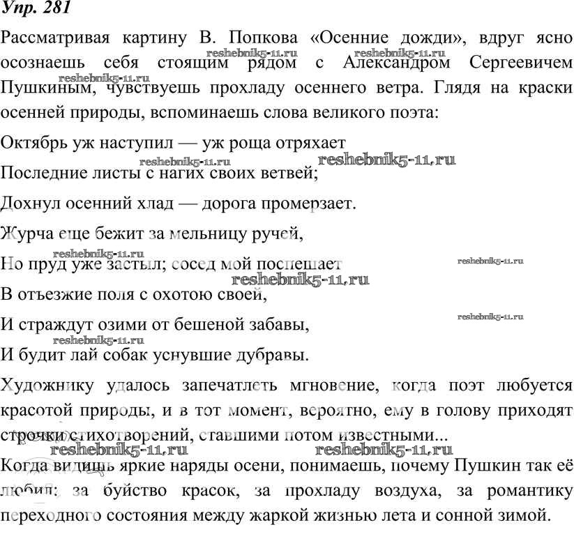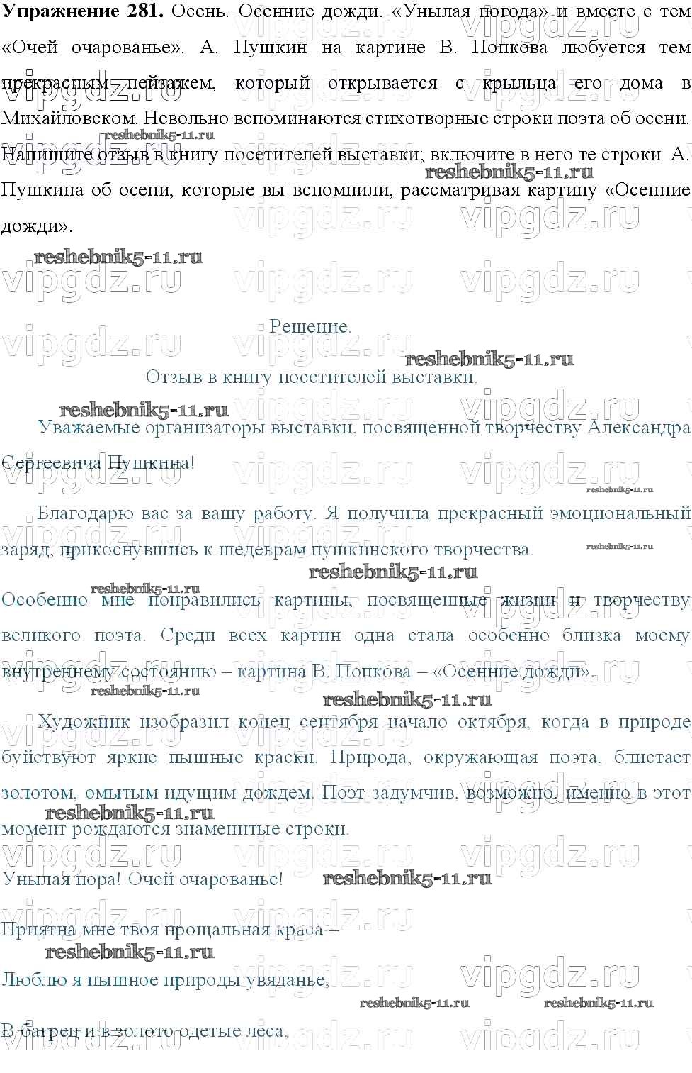 Русский язык за 8 класс Тростенцова Учебник Просвещение упражнение № 281