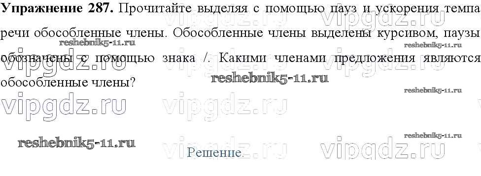 Готовая домашняя работа с ответами по Русскому языку за 8 класс Тростенцова, Ладыженская, Дейкина, Александрова Учебник Просвещение 2014 ФГОС - Упражнения 287