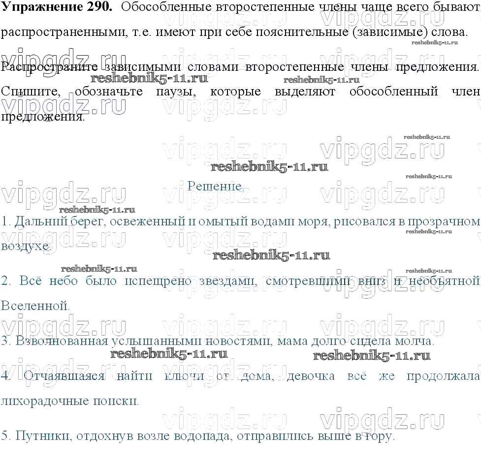 Готовая домашняя работа с ответами по Русскому языку за 8 класс Тростенцова, Ладыженская, Дейкина, Александрова Учебник Просвещение 2014 ФГОС - Упражнения 290