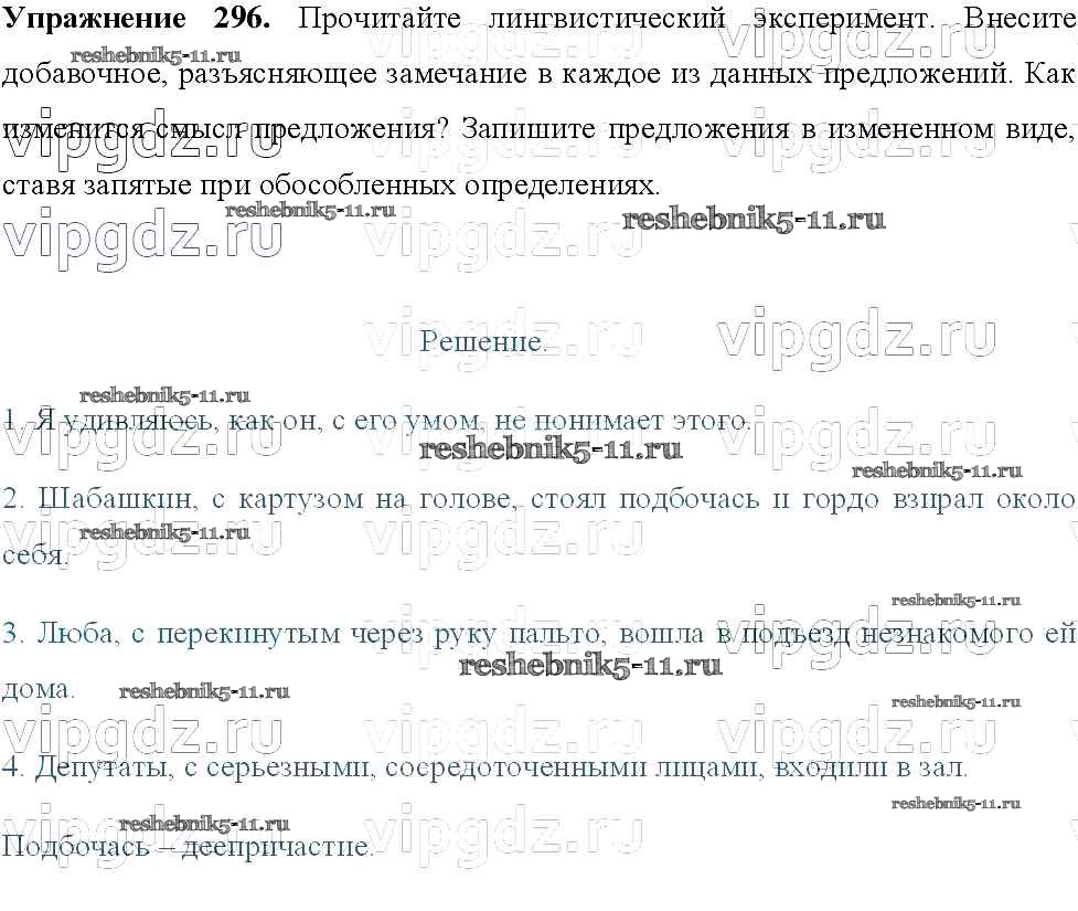 Готовая домашняя работа с ответами по Русскому языку за 8 класс Тростенцова, Ладыженская, Дейкина, Александрова Учебник Просвещение 2014 ФГОС - Упражнения 296