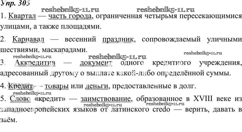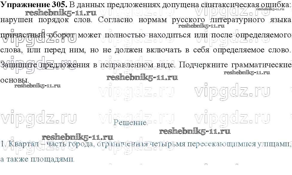Готовая домашняя работа с ответами по Русскому языку за 8 класс Тростенцова, Ладыженская, Дейкина, Александрова Учебник Просвещение 2014 ФГОС - Упражнения 305
