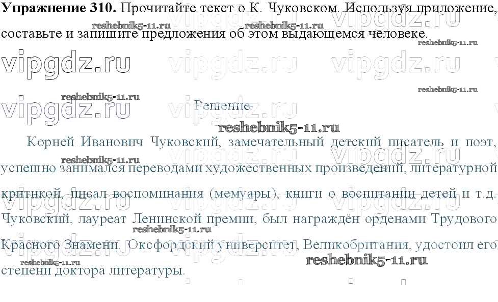 Готовая домашняя работа с ответами по Русскому языку за 8 класс Тростенцова, Ладыженская, Дейкина, Александрова Учебник Просвещение 2014 ФГОС - Упражнения 310