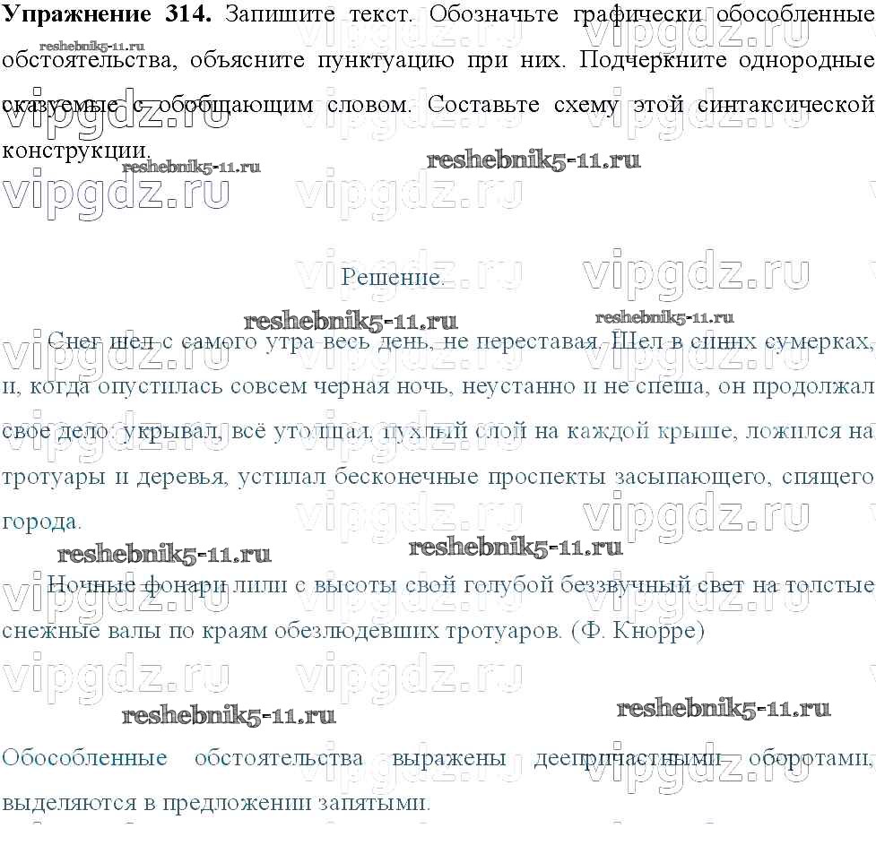 Готовая домашняя работа с ответами по Русскому языку за 8 класс Тростенцова, Ладыженская, Дейкина, Александрова Учебник Просвещение 2014 ФГОС - Упражнения 314