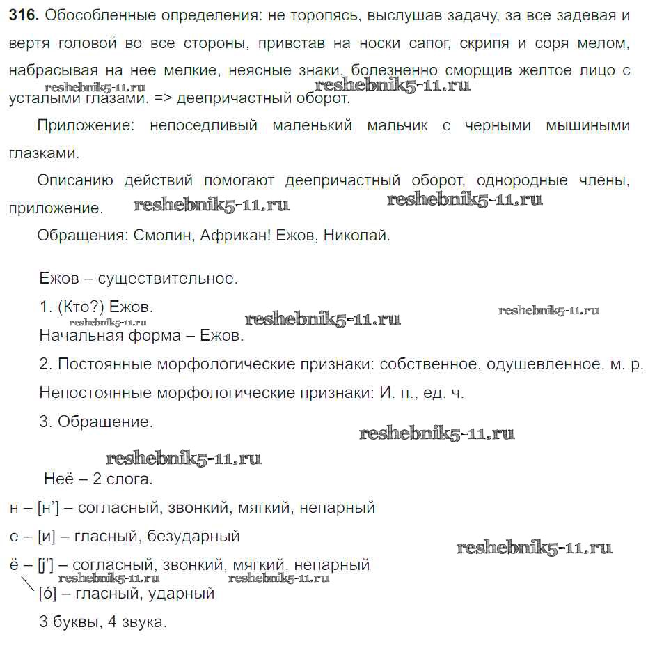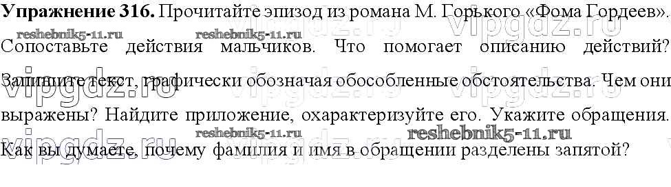 Готовая домашняя работа с ответами по Русскому языку за 8 класс Тростенцова, Ладыженская, Дейкина, Александрова Учебник Просвещение 2014 ФГОС - Упражнения 316
