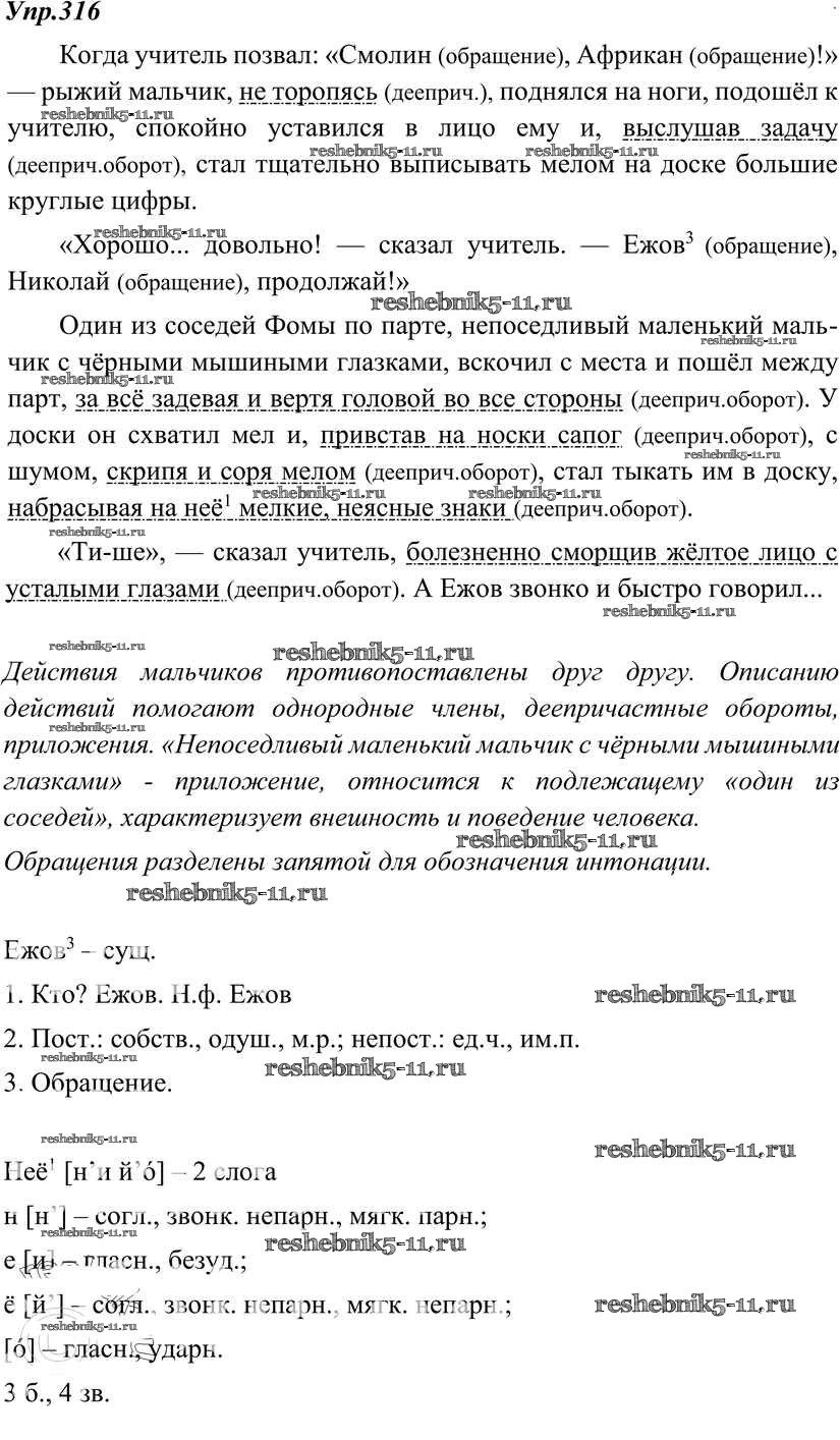 Русский язык за 8 класс Тростенцова Учебник Просвещение упражнение № 316