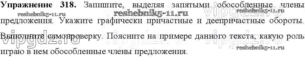 Готовая домашняя работа с ответами по Русскому языку за 8 класс Тростенцова, Ладыженская, Дейкина, Александрова Учебник Просвещение 2014 ФГОС - Упражнения 318