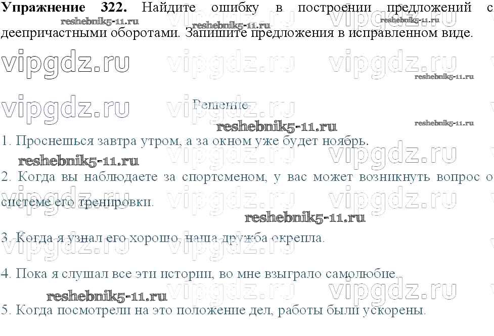 Русский язык за 8 класс Тростенцова Учебник Просвещение упражнение № 322