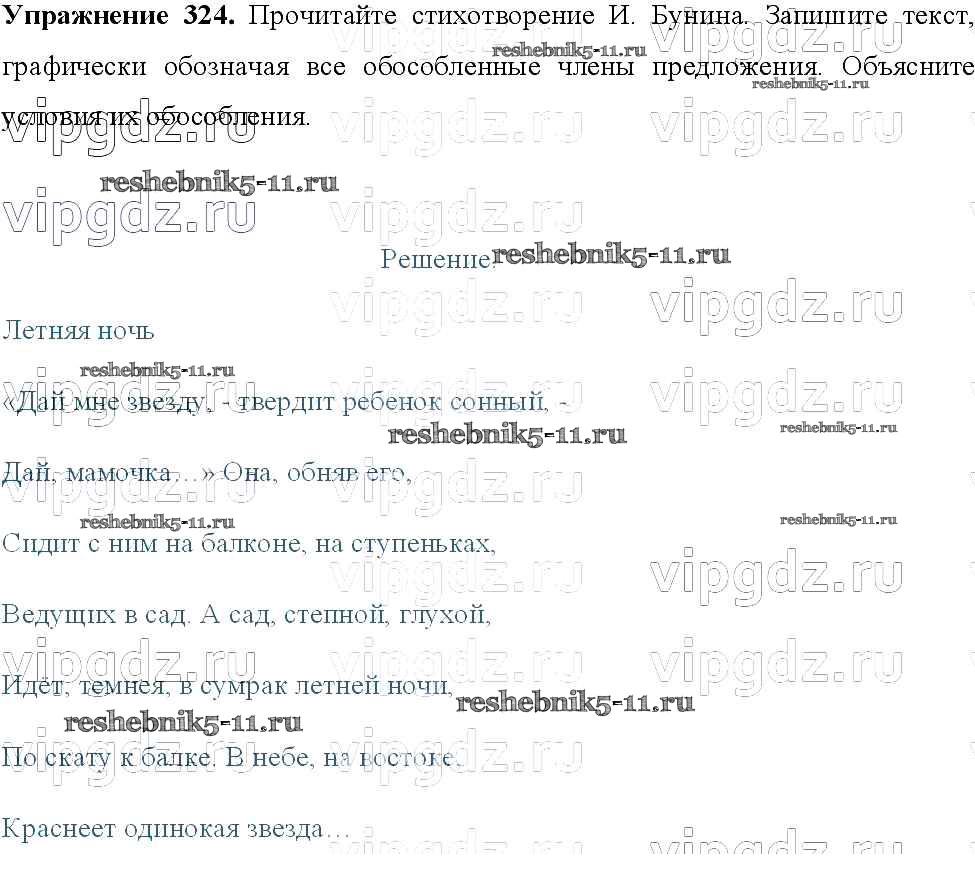 Готовая домашняя работа с ответами по Русскому языку за 8 класс Тростенцова, Ладыженская, Дейкина, Александрова Учебник Просвещение 2014 ФГОС - Упражнения 324