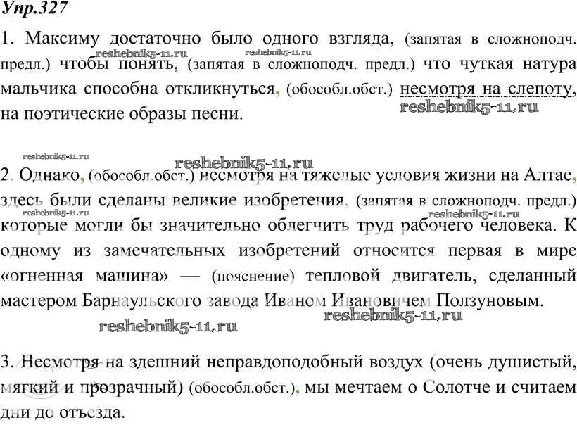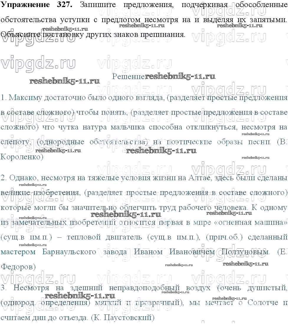 Готовая домашняя работа с ответами по Русскому языку за 8 класс Тростенцова, Ладыженская, Дейкина, Александрова Учебник Просвещение 2014 ФГОС - Упражнения 327