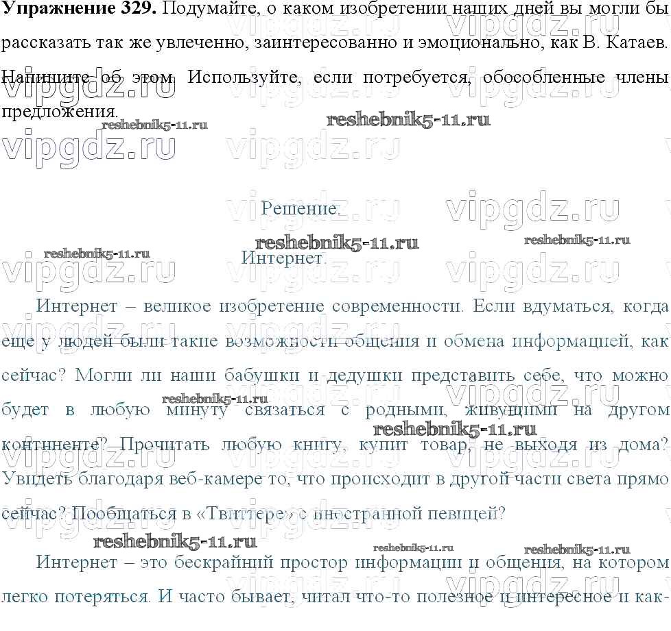 Готовая домашняя работа с ответами по Русскому языку за 8 класс Тростенцова, Ладыженская, Дейкина, Александрова Учебник Просвещение 2014 ФГОС - Упражнения 329