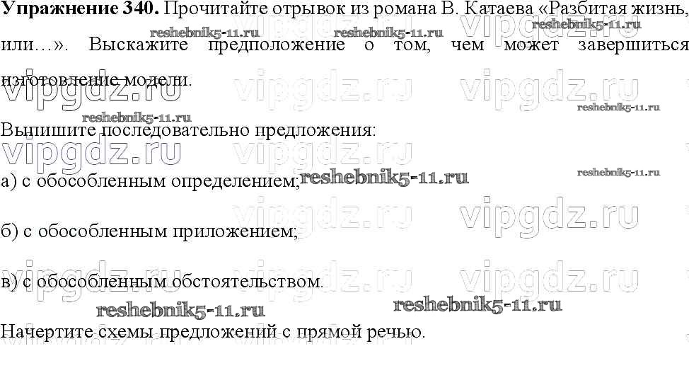 Готовая домашняя работа с ответами по Русскому языку за 8 класс Тростенцова, Ладыженская, Дейкина, Александрова Учебник Просвещение 2014 ФГОС - Упражнения 340
