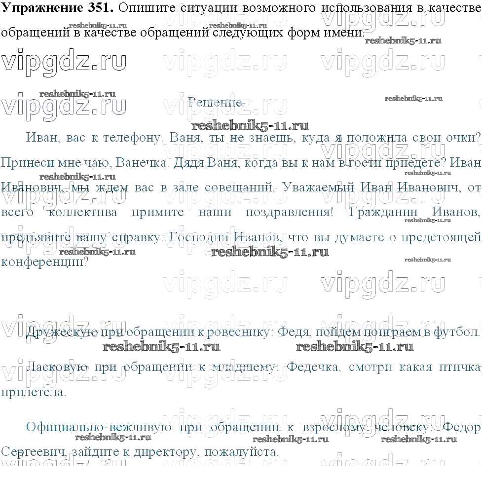 Готовая домашняя работа с ответами по Русскому языку за 8 класс Тростенцова, Ладыженская, Дейкина, Александрова Учебник Просвещение 2014 ФГОС - Упражнения 351