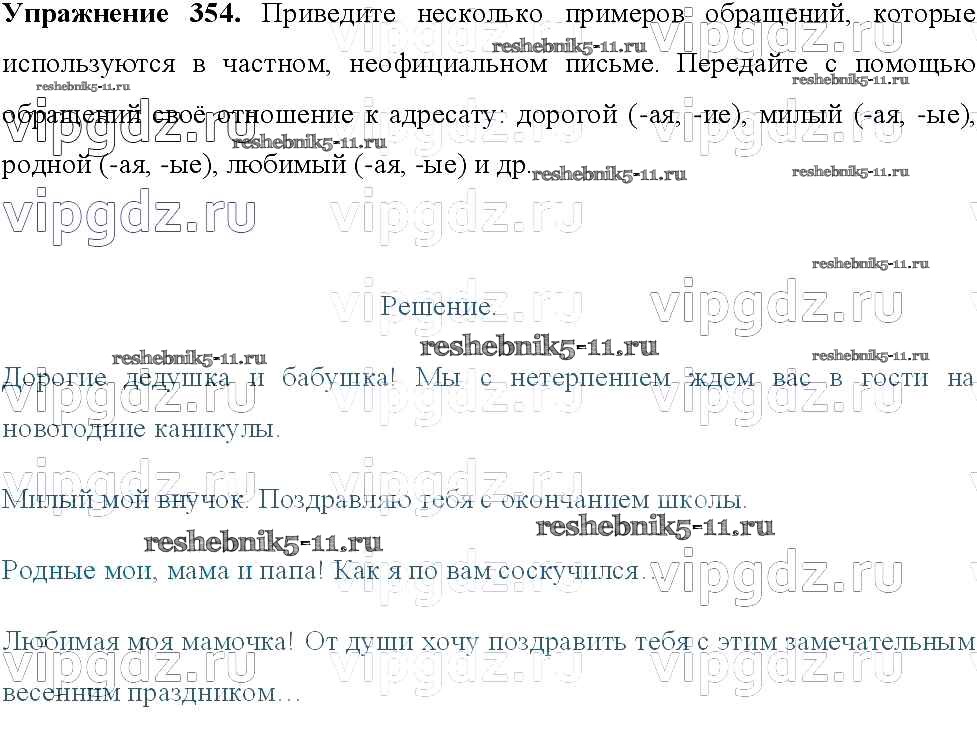 Русский язык за 8 класс Тростенцова Учебник Просвещение упражнение № 354