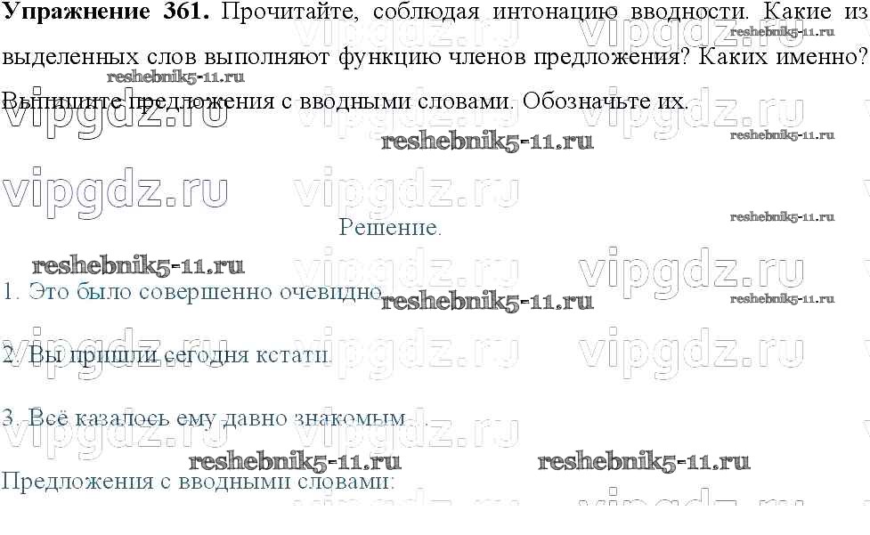 Готовая домашняя работа с ответами по Русскому языку за 8 класс Тростенцова, Ладыженская, Дейкина, Александрова Учебник Просвещение 2014 ФГОС - Упражнения 361