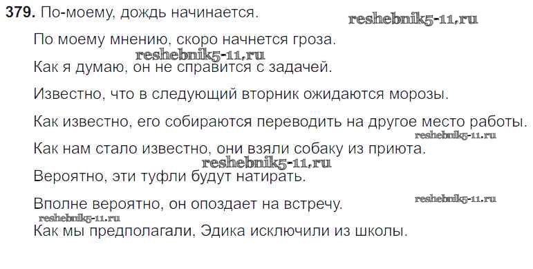 Русский язык за 8 класс Тростенцова Учебник Просвещение упражнение № 379