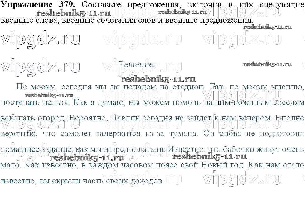 Готовая домашняя работа с ответами по Русскому языку за 8 класс Тростенцова, Ладыженская, Дейкина, Александрова Учебник Просвещение 2014 ФГОС - Упражнения 379