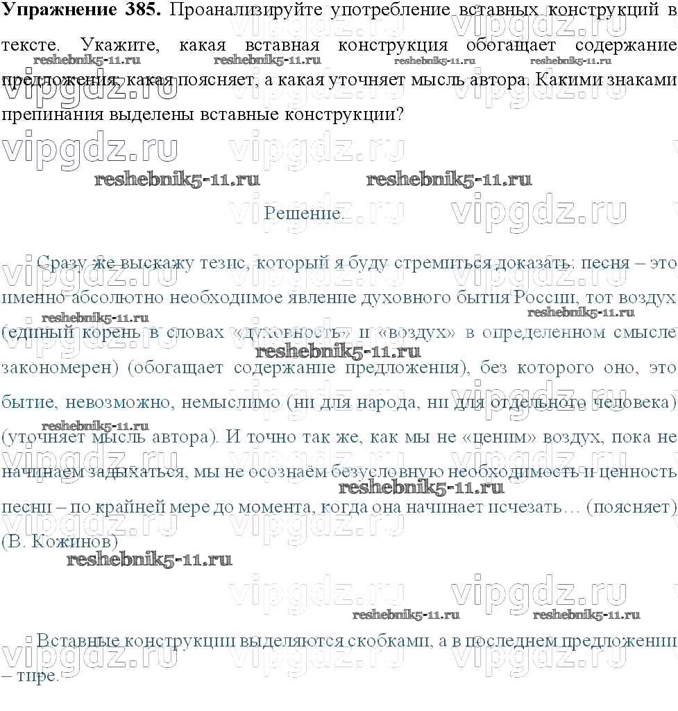 Готовая домашняя работа с ответами по Русскому языку за 8 класс Тростенцова, Ладыженская, Дейкина, Александрова Учебник Просвещение 2014 ФГОС - Упражнения 385