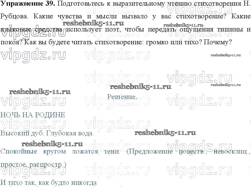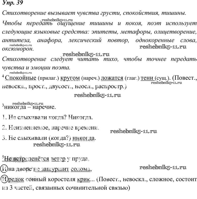 Готовая домашняя работа с ответами по Русскому языку за 8 класс Тростенцова, Ладыженская, Дейкина, Александрова Учебник Просвещение 2014 ФГОС - Упражнения 39