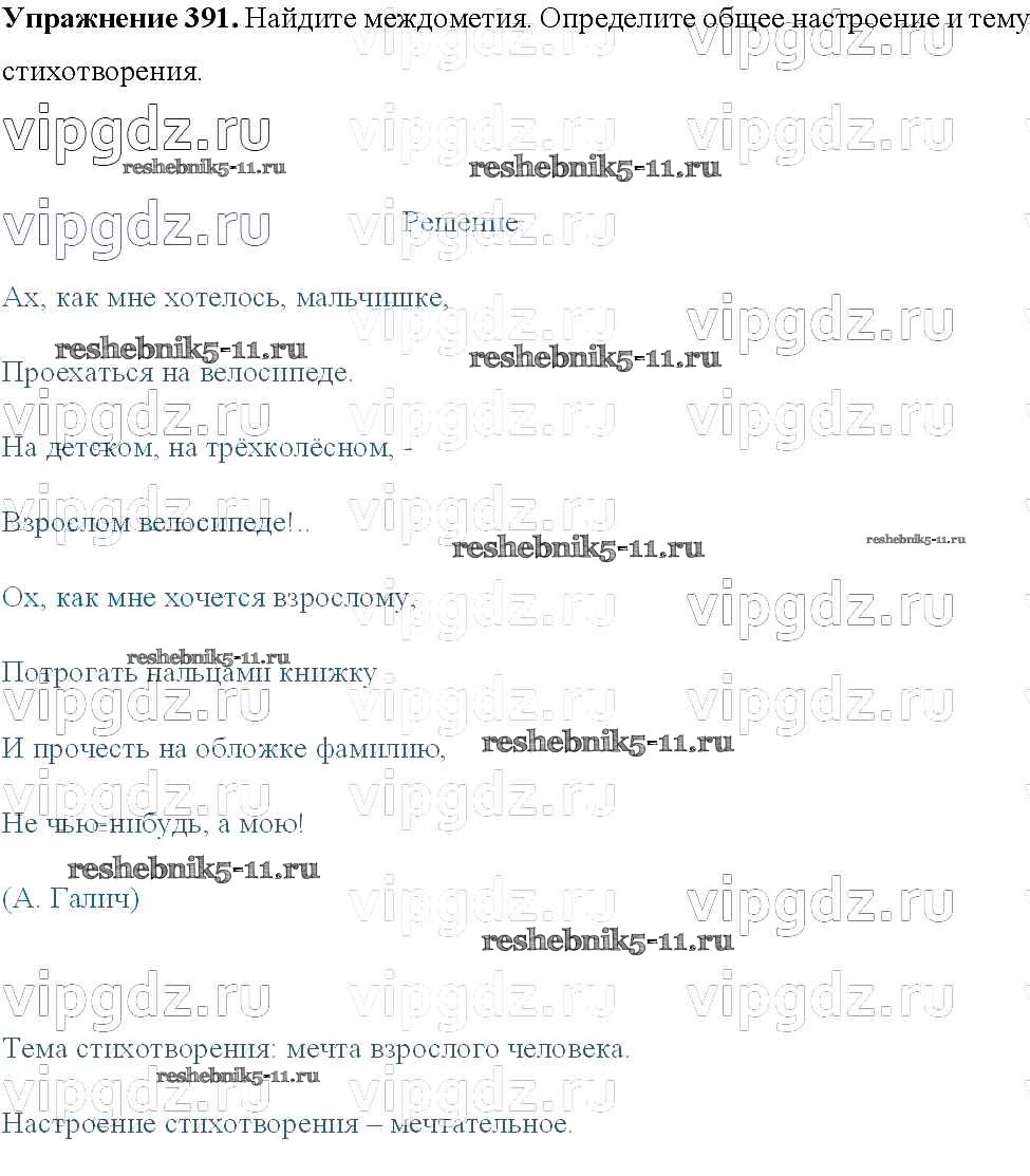 Русский язык за 8 класс Тростенцова Учебник Просвещение упражнение № 391