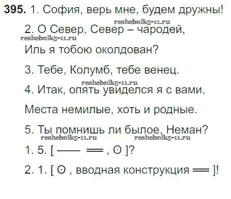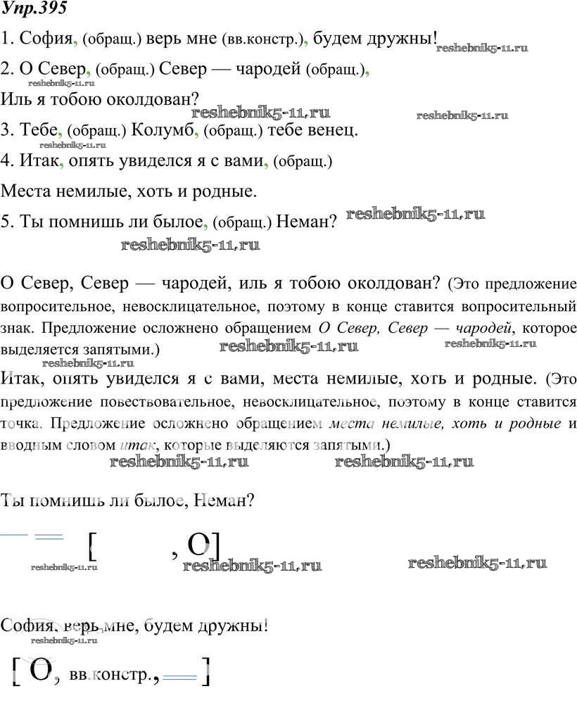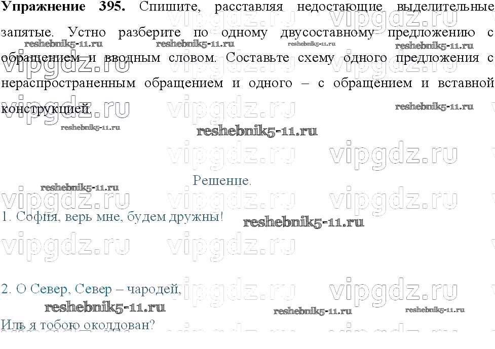 Готовая домашняя работа с ответами по Русскому языку за 8 класс Тростенцова, Ладыженская, Дейкина, Александрова Учебник Просвещение 2014 ФГОС - Упражнения 395