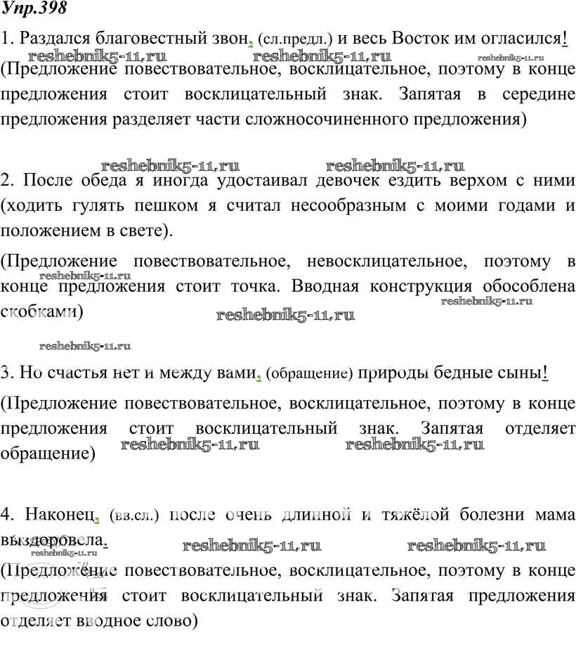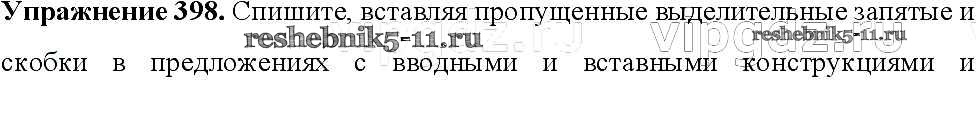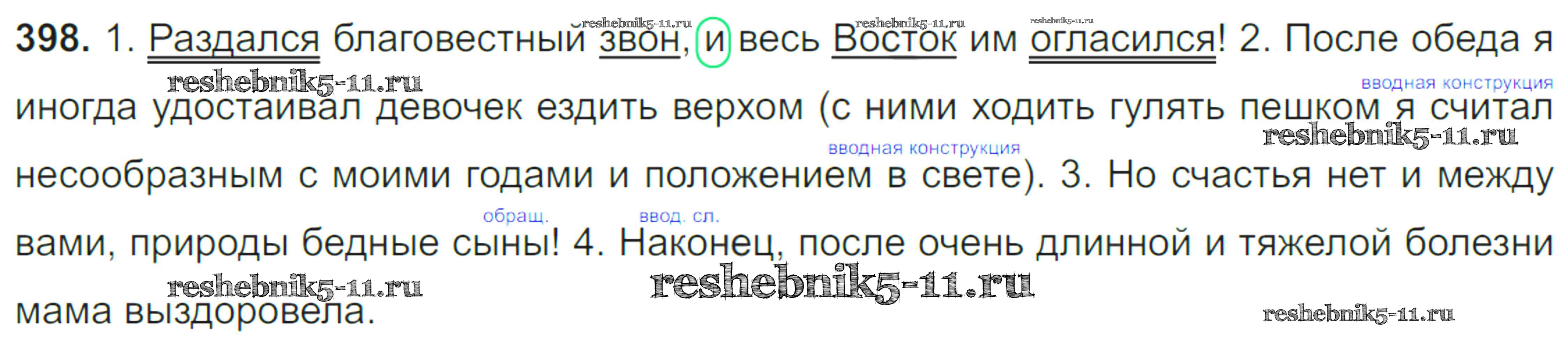 Готовая домашняя работа с ответами по Русскому языку за 8 класс Тростенцова, Ладыженская, Дейкина, Александрова Учебник Просвещение 2014 ФГОС - Упражнения 398
