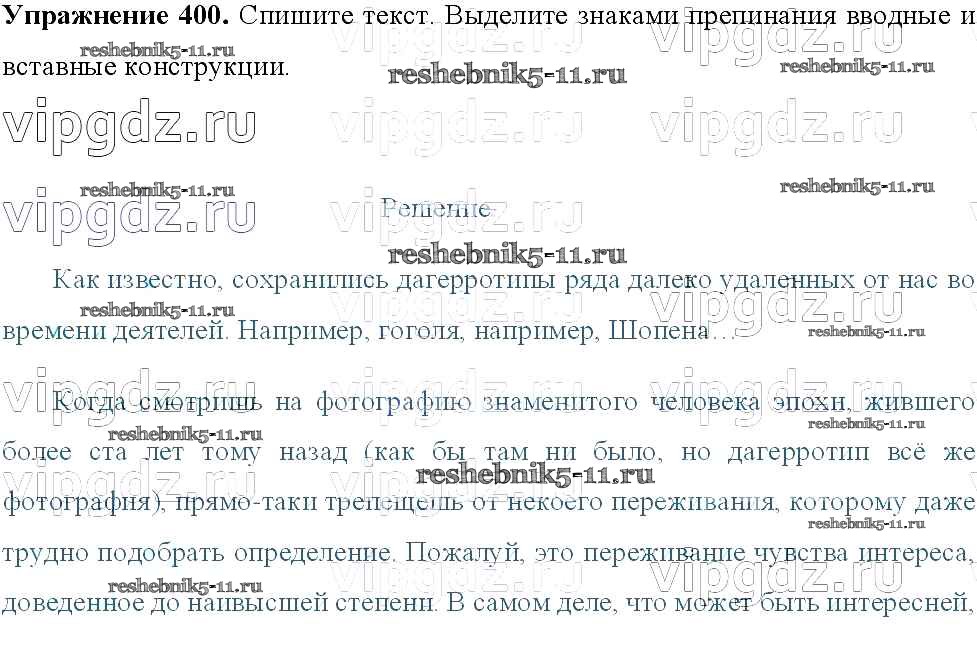 Готовая домашняя работа с ответами по Русскому языку за 8 класс Тростенцова, Ладыженская, Дейкина, Александрова Учебник Просвещение 2014 ФГОС - Упражнения 400