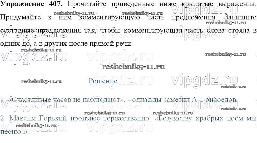 Готовая домашняя работа с ответами по Русскому языку за 8 класс Тростенцова, Ладыженская, Дейкина, Александрова Учебник Просвещение 2014 ФГОС - Упражнения 407