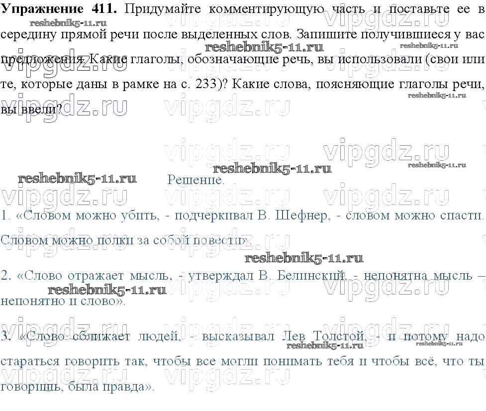 Русский язык за 8 класс Тростенцова Учебник Просвещение упражнение № 411