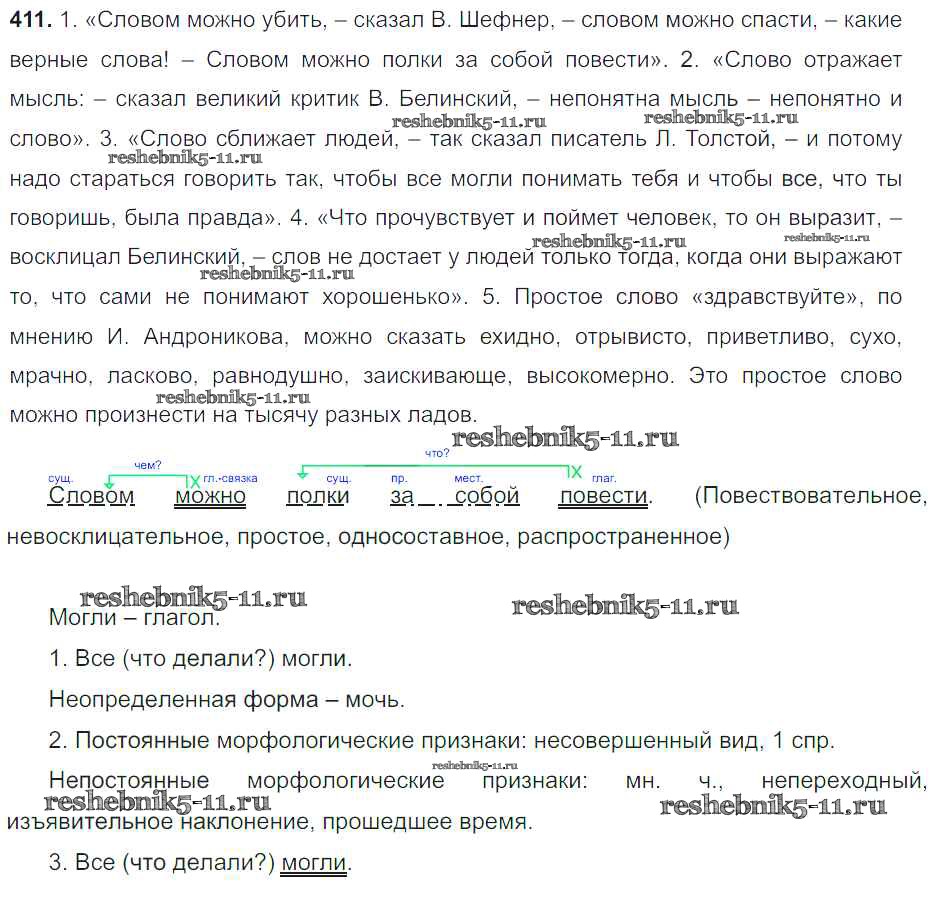 Готовая домашняя работа с ответами по Русскому языку за 8 класс Тростенцова, Ладыженская, Дейкина, Александрова Учебник Просвещение 2014 ФГОС - Упражнения 411