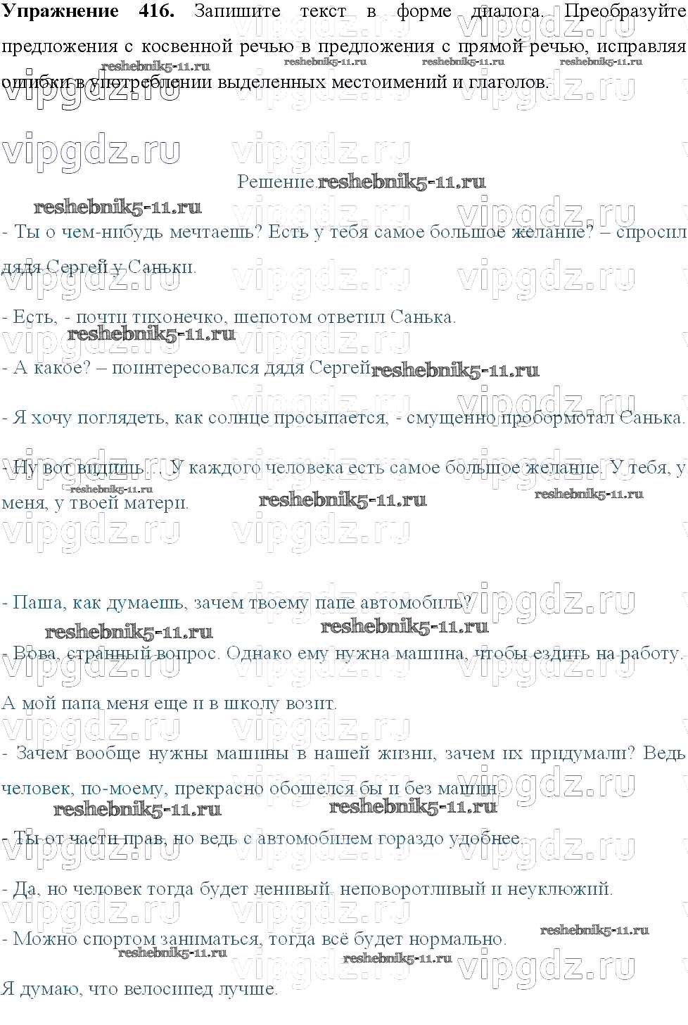 Русский язык за 8 класс Тростенцова Учебник Просвещение упражнение № 416