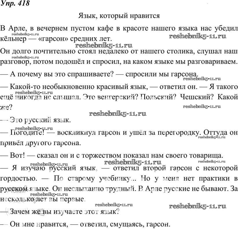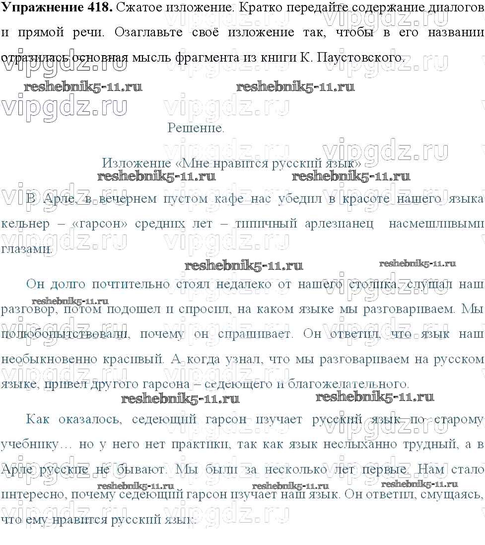 Русский язык за 8 класс Тростенцова Учебник Просвещение упражнение № 418