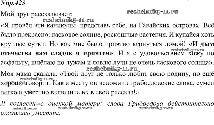 Готовая домашняя работа с ответами по Русскому языку за 8 класс Тростенцова, Ладыженская, Дейкина, Александрова Учебник Просвещение 2014 ФГОС - Упражнения 423