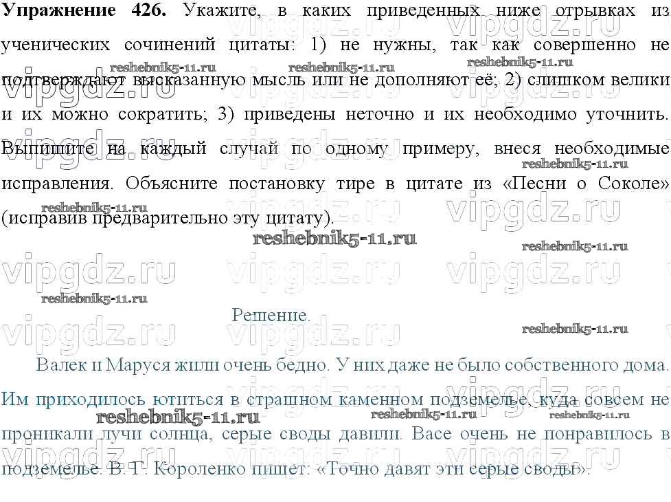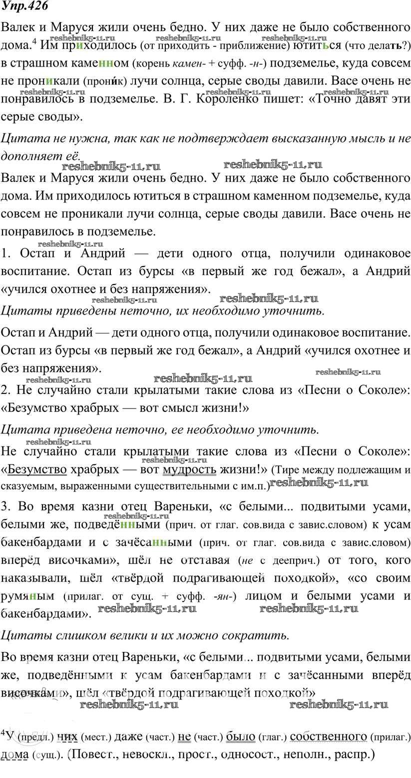 Готовая домашняя работа с ответами по Русскому языку за 8 класс Тростенцова, Ладыженская, Дейкина, Александрова Учебник Просвещение 2014 ФГОС - Упражнения 426