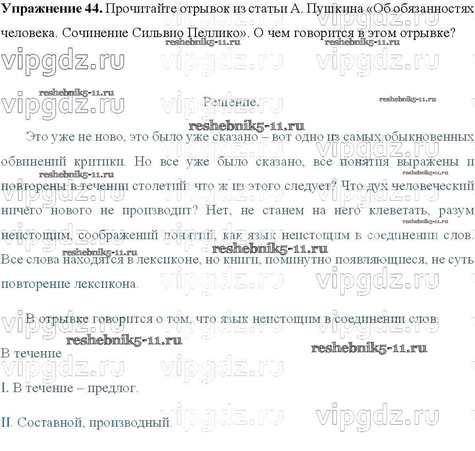 Готовая домашняя работа с ответами по Русскому языку за 8 класс Тростенцова, Ладыженская, Дейкина, Александрова Учебник Просвещение 2014 ФГОС - Упражнения 44