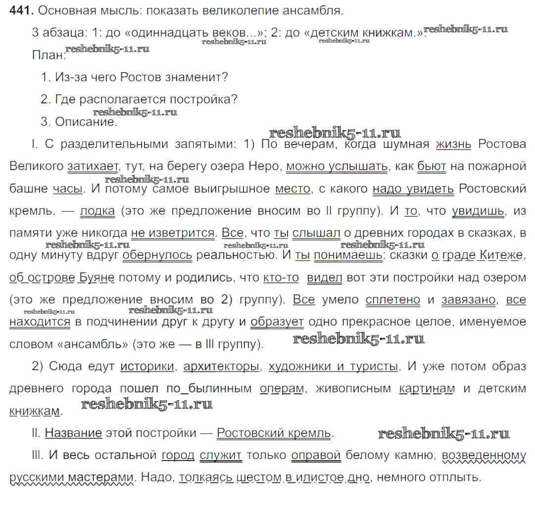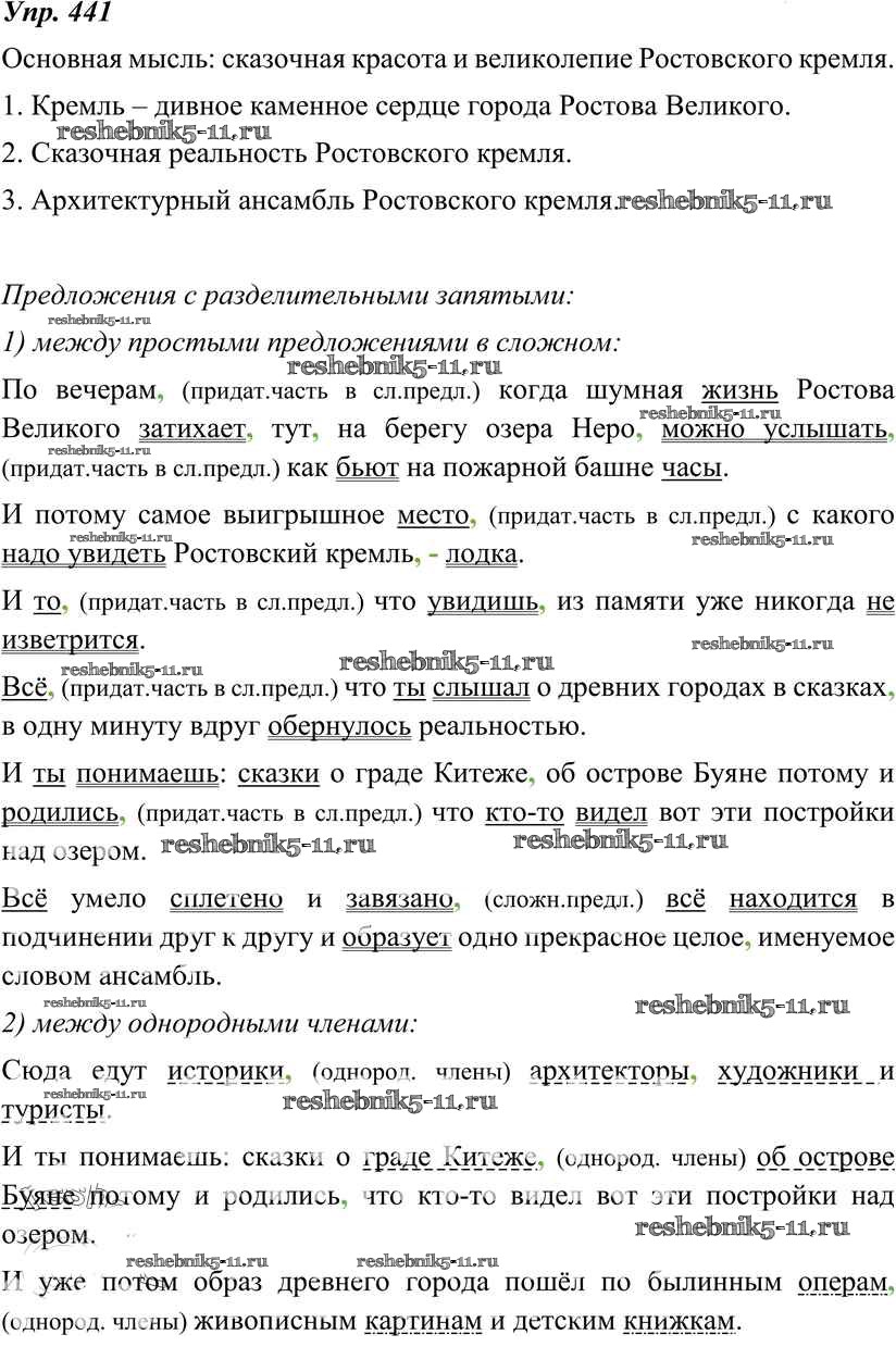 Готовая домашняя работа с ответами по Русскому языку за 8 класс Тростенцова, Ладыженская, Дейкина, Александрова Учебник Просвещение 2014 ФГОС - Упражнения 441