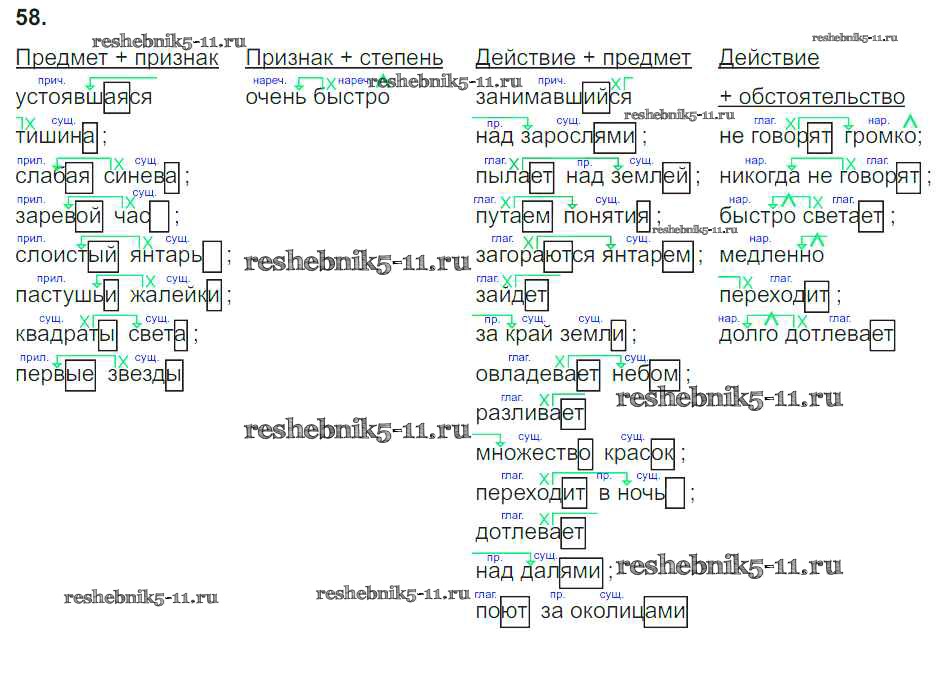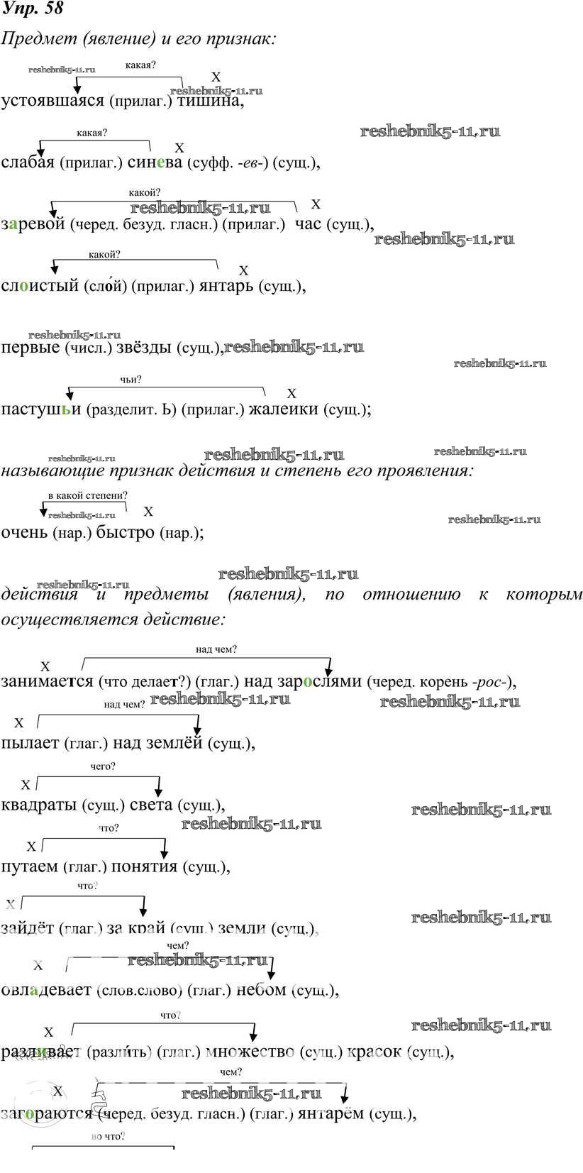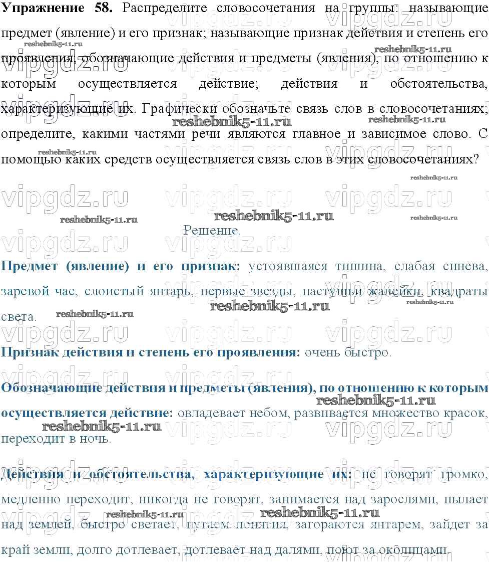 Готовая домашняя работа с ответами по Русскому языку за 8 класс Тростенцова, Ладыженская, Дейкина, Александрова Учебник Просвещение 2014 ФГОС - Упражнения 58