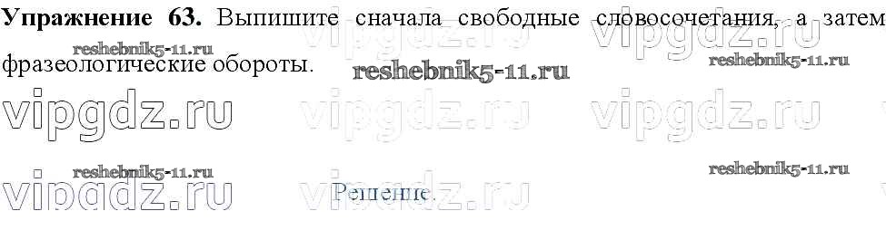 Готовая домашняя работа с ответами по Русскому языку за 8 класс Тростенцова, Ладыженская, Дейкина, Александрова Учебник Просвещение 2014 ФГОС - Упражнения 63