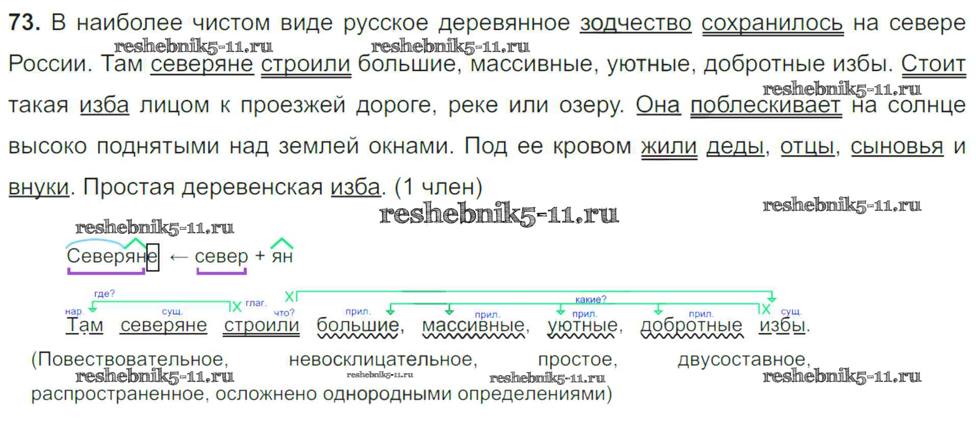 Готовая домашняя работа с ответами по Русскому языку за 8 класс Тростенцова, Ладыженская, Дейкина, Александрова Учебник Просвещение 2014 ФГОС - Упражнения 73