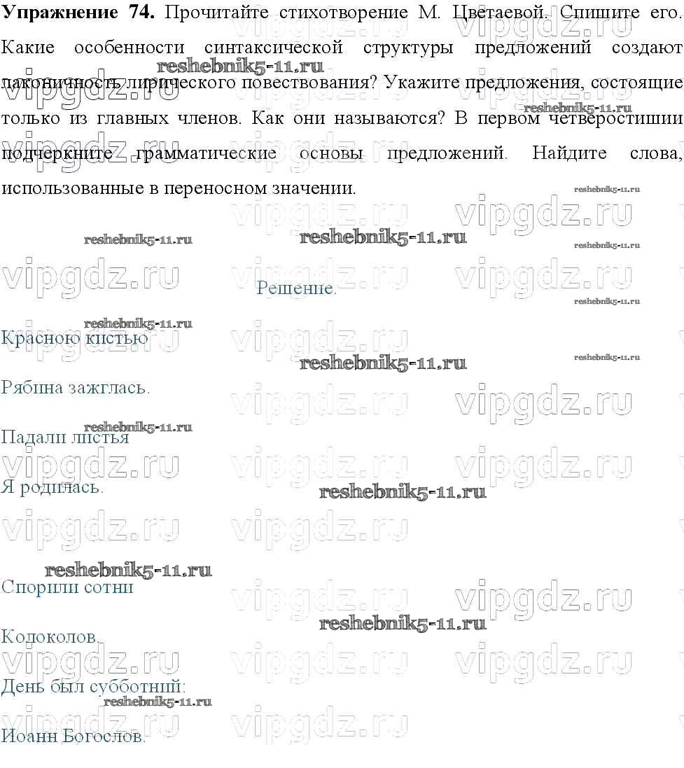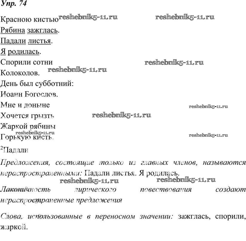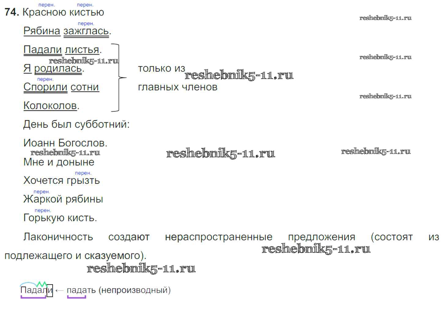 Готовая домашняя работа с ответами по Русскому языку за 8 класс Тростенцова, Ладыженская, Дейкина, Александрова Учебник Просвещение 2014 ФГОС - Упражнения 74