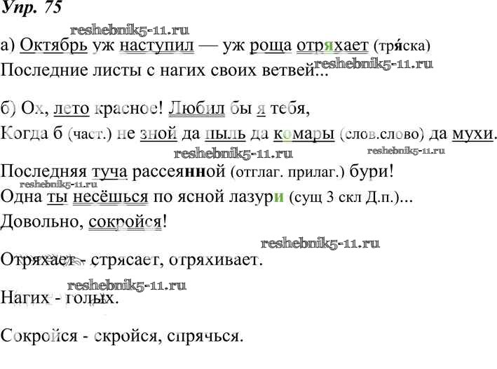 Готовая домашняя работа с ответами по Русскому языку за 8 класс Тростенцова, Ладыженская, Дейкина, Александрова Учебник Просвещение 2014 ФГОС - Упражнения 75